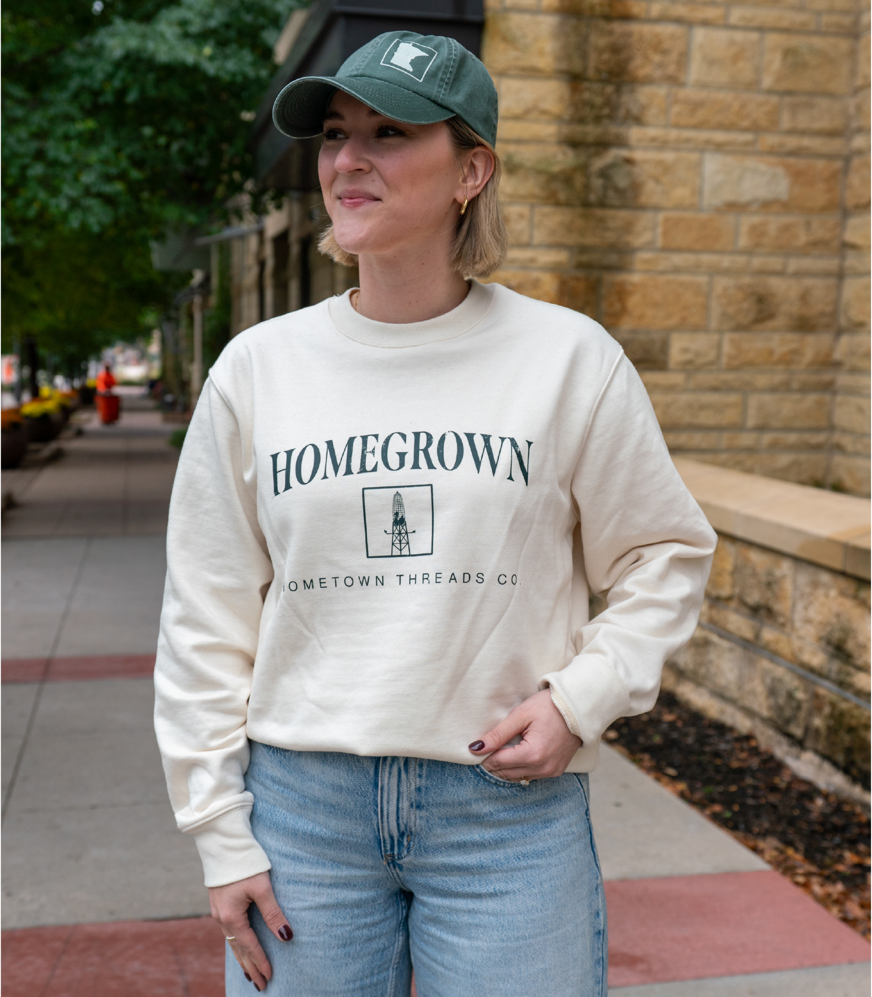Rooted right where it all started. The Homegrown Crewneck is a clean, everyday essential that celebrates local pride — featuring the iconic Corn Tower graphic and a vintage-style arch print. Heavyweight comfort meets subtle storytelling.
