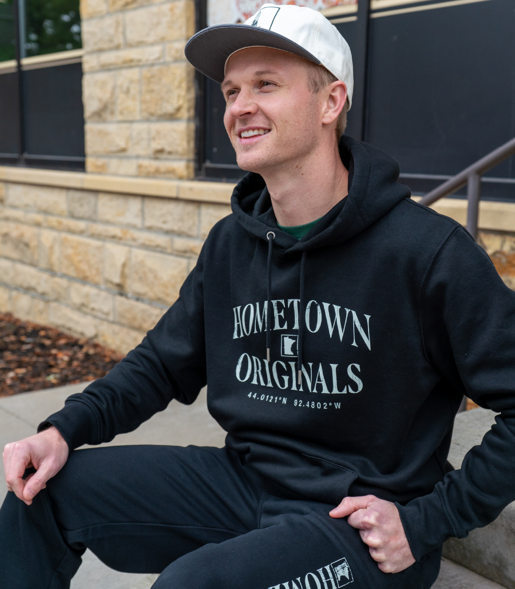 Side Print: “Hometown” vertical graphic with MN icon in bone ink.