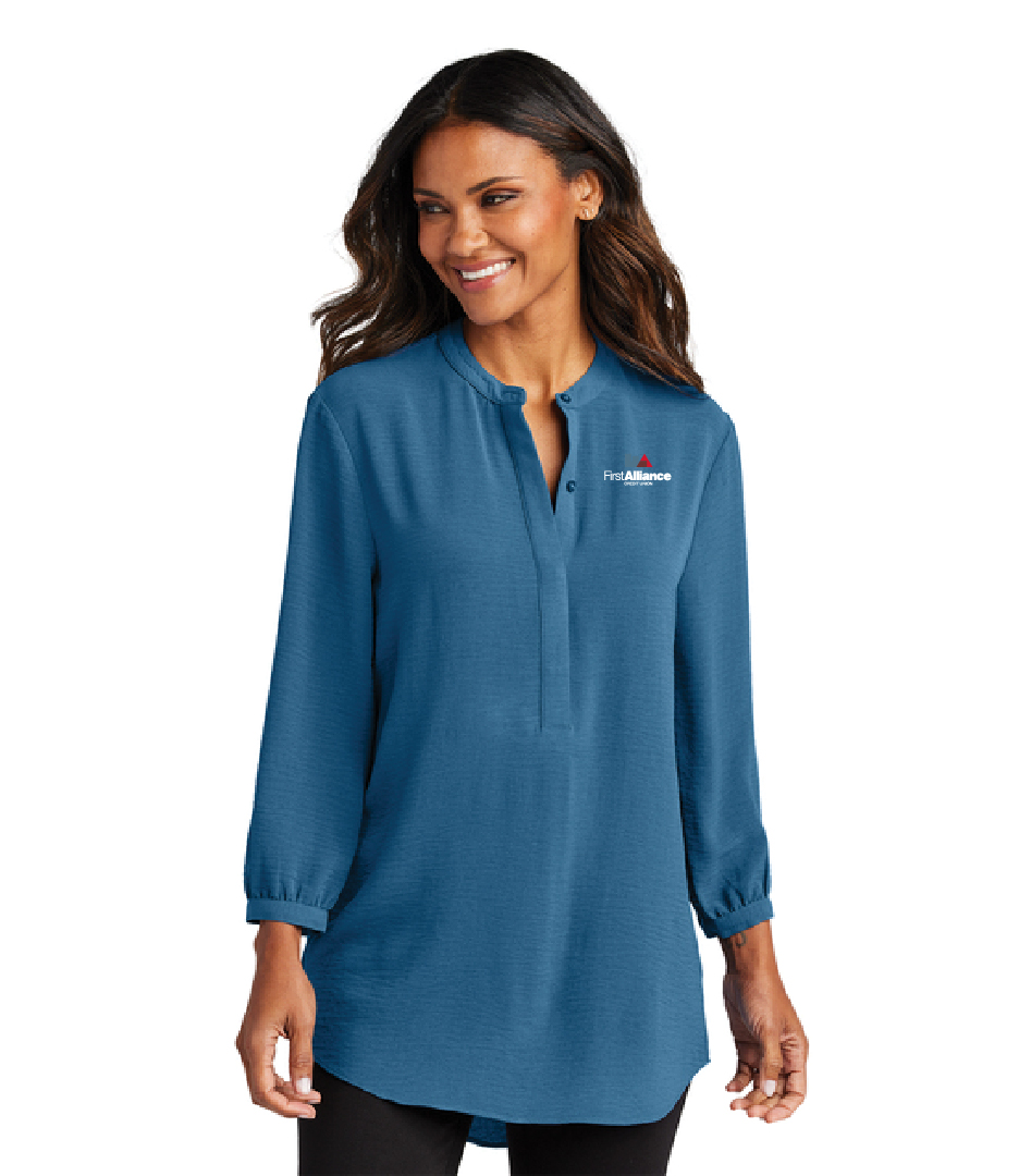 This beautifully draped tunic makes a statement with its longer length and accentuated gathers at the back yoke.