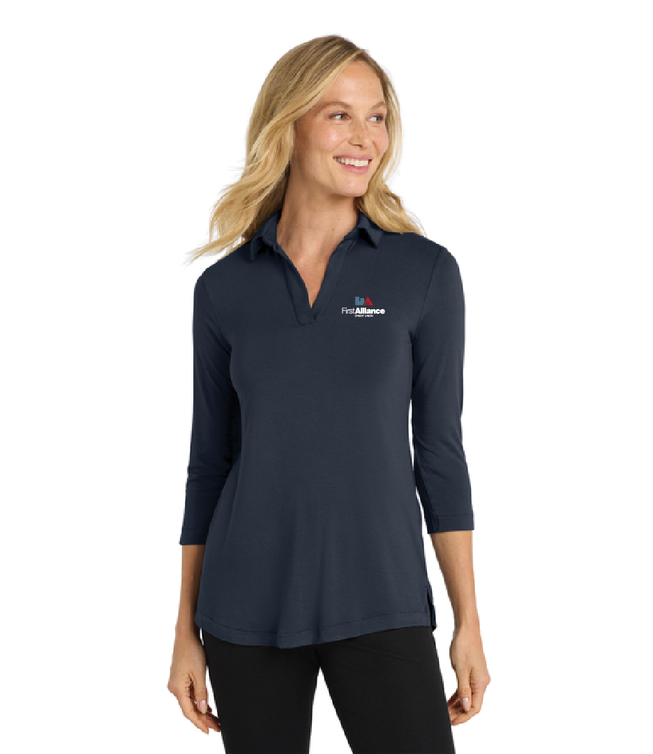 The updated look of this polo-inspired tunic has a longer length to keep you covered while still looking polished. The stretch in the machine-washable fabric ensures you feel comfortable.