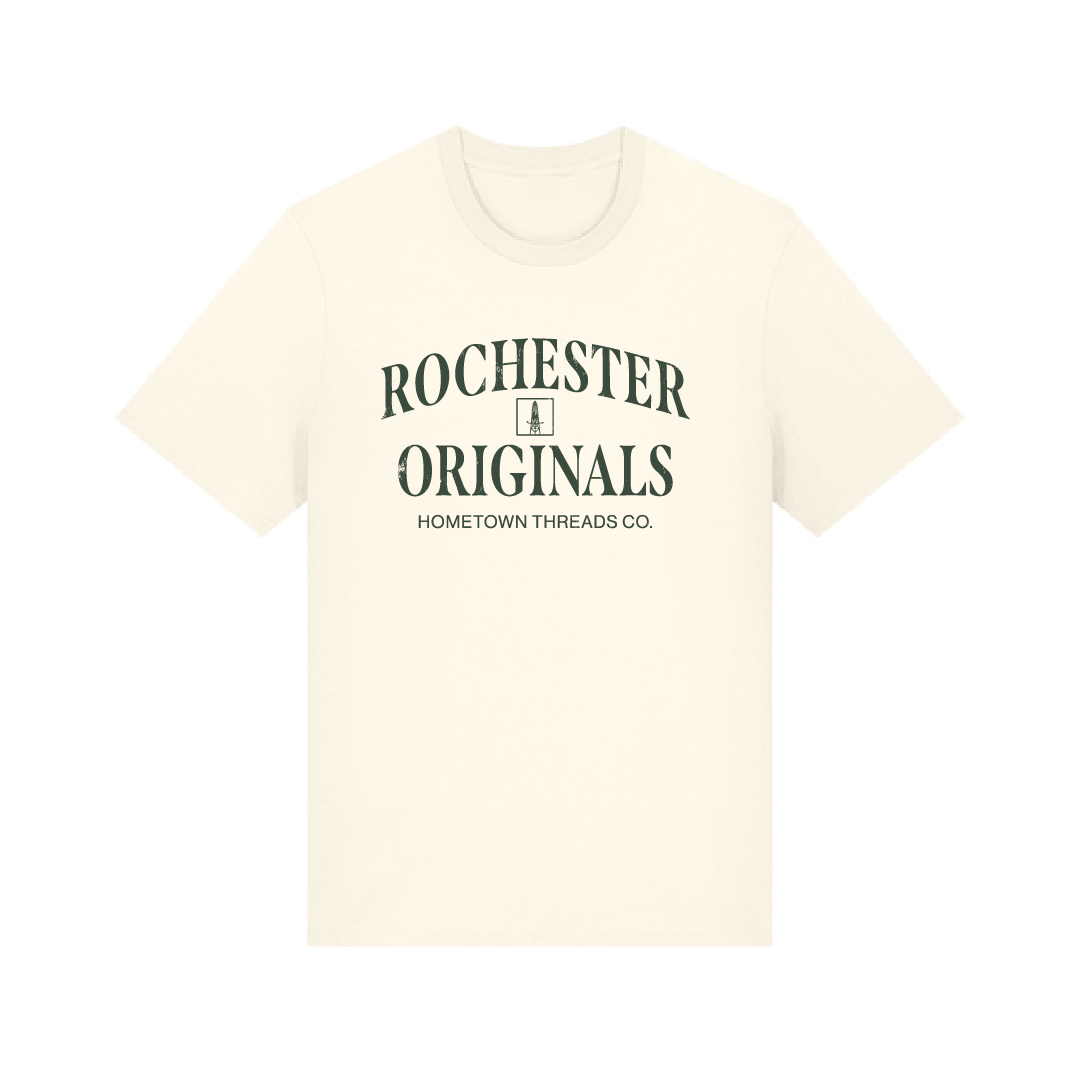 The one that started it all. The Rochester Originals Tee pays tribute to the city’s roots and the people who built it. Vintage-style typography meets a subtle Corn Tower detail for a design that’s equal parts classic and local pride.